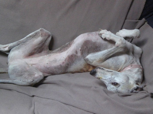 Souvenez vous, MIA avait été trouvée quasiment mourante, tout à fait par hasard alors que notre bénévole cherchait un autre chien, dans une décharge, d'une maigreur extrême dont le corps décharné
