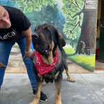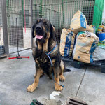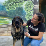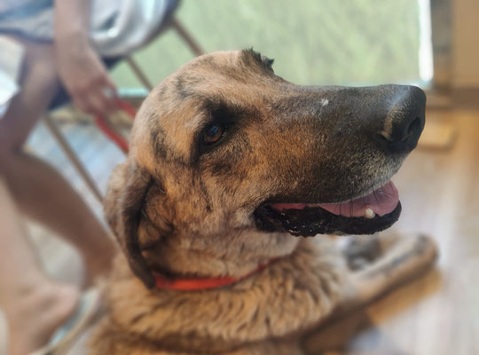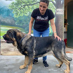 Ses résultats d'analyses sont en attente mais MADRINA, arrivée couverte de parasites, est aujourd'hui en très bon état physique. Avec cette magnifique robe noire et feu, elle peut paraître impressionnante mais sa seule force réside dans la dissuasion, comme savent si bien le faire ces braves mastins toujours prêts à veiller sur leur famille.