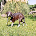 PRIMAVERA, cette superbe mastine à la robe bicolore, aimerait sûrement pouvoir se promener, profiter d'un vrai jardin avec de l'herbe où se rouler, sentir, fouiner, faire de multiples découvertes et tout bonnement se dégourdir les pattes dans quelques jolies foulées, cette vie naturelle et saine à laquelle tout bon chien a droit. Tout plutôt que grandir anonymement entre ces murs.
