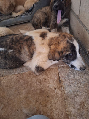 Au 08 Septembre 2025 : Il est toujours triste de voir un bébé grandir en refuge. Car oui, PRIMAVERA n'est encore qu'un bébé de six mois et, hormis quelques petites "récréations" avec des copains, elle tourne et déambule sans interruption entre les murs de son box. C'est mieux qu'une liberté à souffrir de la faim ou à risquer sa vie sur les routes me direz-vous, et j'en conviens. Et les bénévoles, avec courage et dévouement, font le maximum pour tous ces sans foyer. Mais c'est tout de même une situation peu agréable pour ces malheureux et en particulier les chiots.